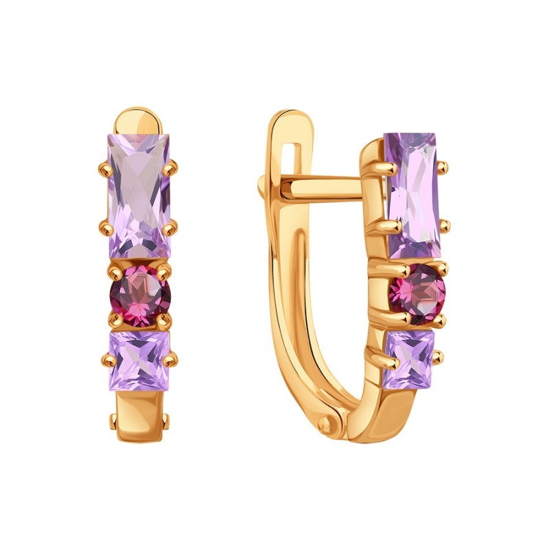аметистом родолитом. Нежные золотые серьги из красного