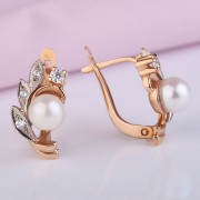 Серьги красно-белые 585°, украшенные 2 жемчужинами 6,0 мм, 2 фианитами ¢ 3,0 мм, 6 фианитами ¢ 1,0 мм.