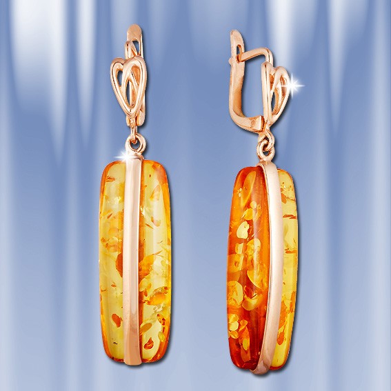 Серьги с янтарем. Красное золото 585 пробы