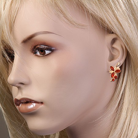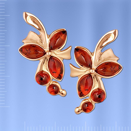 Красивые серьги из массива 585 (14кт) российского Красное золото с крупным янтарем нежной закрепки. Прямоугольный янтарь в теплых тонах гармонично привлекает внимание. Все серьги серьги имеют размер примерно 28 x 15 мм, оснащены булавкой и складным рычагом, и их можно носить только с пирсингом. мочки ушей.