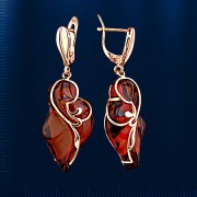 Красивые серьги из массива 585 (14кт) российского Красное золото с большим янтарем изящной закрепки (около 30 x 16 x 6 мм). Прямоугольный янтарь в теплых тонах гармонично привлекает внимание. Все серьги имеют размер примерно 47 x 16 мм, оснащены булавкой и складным рычагом, и их можно носить только с пирсингом. мочки ушей.