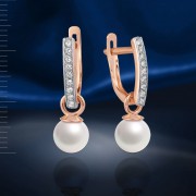 Нежные золотые серьги из российского красного золота 585 пробы, украшенные жемчугом и сверкающими циркониями! Серьги трансформируются и подходят как к шикарному, так и к повседневному гардеробу.