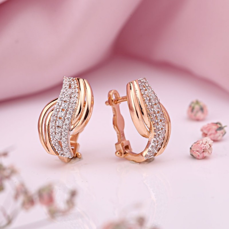 Красивые серьги из белого/розового золота 585 пробы, украшенные цирконием. Эти ослепительные серьги поразят вас красотой и элегантностью.