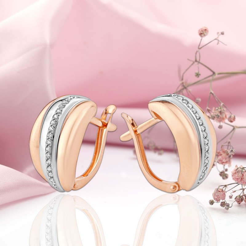 красного золота 585 пробы, украшенные сверкающими циркониями на фоне из
