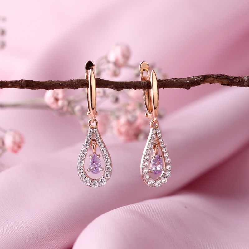 Вставка: 42 фианита бесцветного Ø 1,0 мм; 2 капли фианита светло-фиолетового цвета 4,8 х 3,2 мм