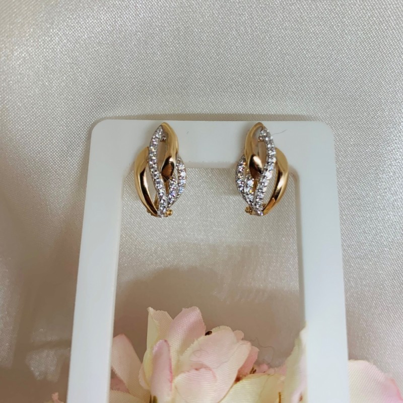 Красивые серьги из белого/розового золота 585 пробы, украшенные цирконием. Эти ослепительные серьги поразят вас красотой и элегантностью.