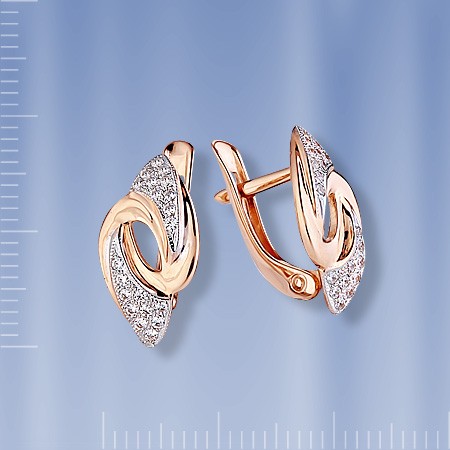 Серьги из русского красного/белого золота 585° с 40 фианитами Ø1 мм. Высота ок. 15 мм. Ширина ок. 7 мм.