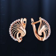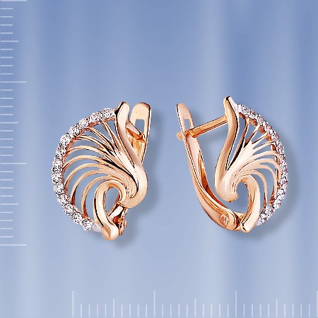 Серьги из русского красного золота 585º с 26 циркониями Ø 1мм. Высота ок. 17 мм. Ширина ок. 12 мм.