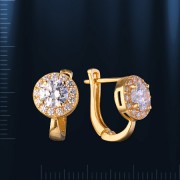 Серьги из русского желтого золота 585° с цирконом Ø 5 мм. Высота ок. 12 мм., ширина ок. 9 мм.