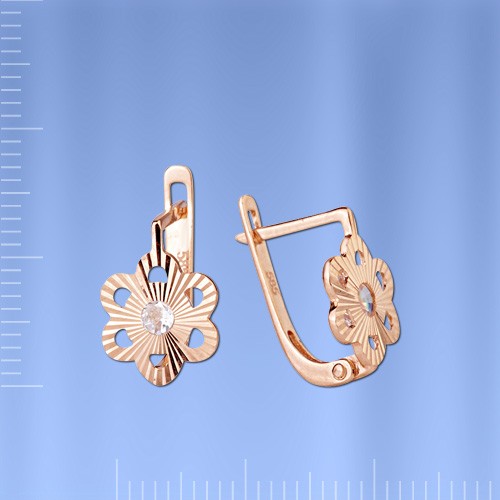 Серьги из русского красного золота 585° с фианитами. Высота ок. 12,0 мм. Ширина около 9,0 мм.