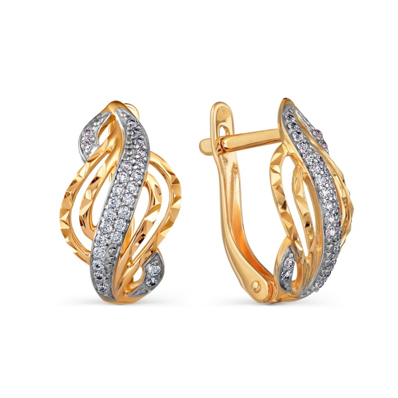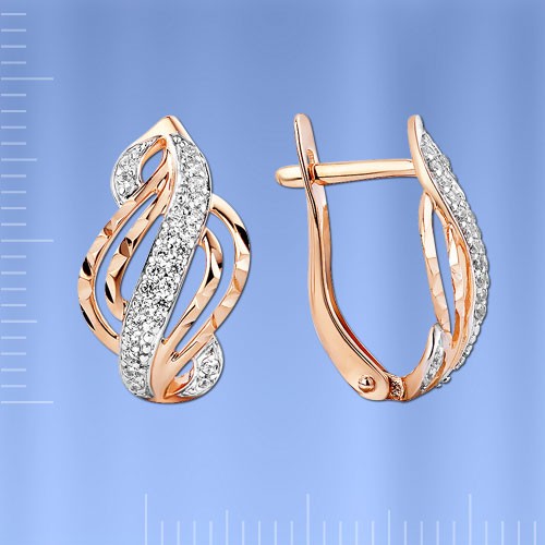 Серьги из русского красного/белого золота 585° с 52 фианитами ок. ¢ 1,0 мм. Высота ок. 18,0 мм. Ширина ок. 10,0 мм.