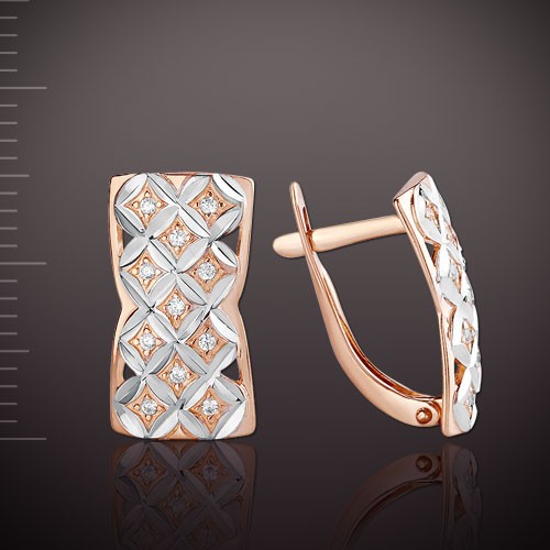 Серьги из русского красного/белого золота 585° с 22 фианитами ок. ¢ 1,0 мм. Высота ок. 16,0 мм. Ширина ок. 8,0 мм.