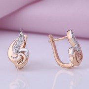 Серьги из русского красного/белого золота 585° с фианитами ок. ¢ 1,0 мм