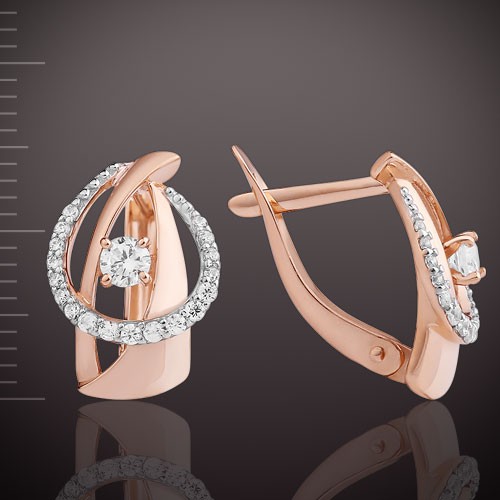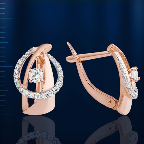 Серьги из русского красного/белого золота 585° с 2 фианитами ок. ¢ 3,0 мм, 36 фианитами ок. ¢ 1,0 мм