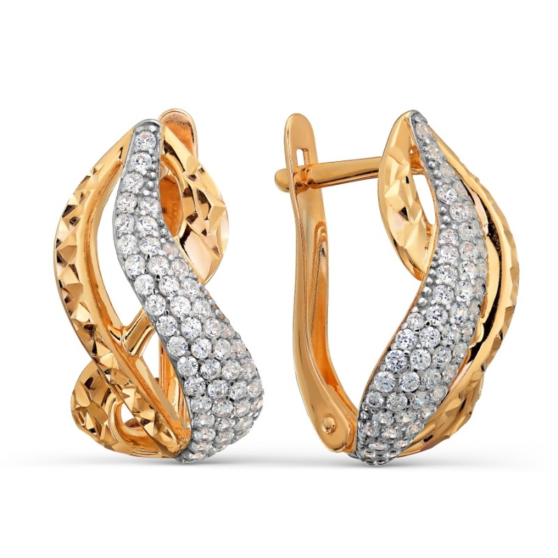 Серьги из русского красного/белого золота 585° с 16 фианитами ок. 1,0 мм, 78 фианитами ок. 1,25 мм