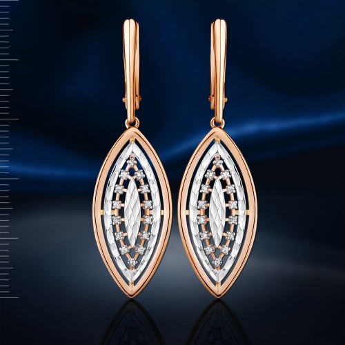 Серьги из русского красного золота 585 пробы с цирконием ок. 1,0 мм