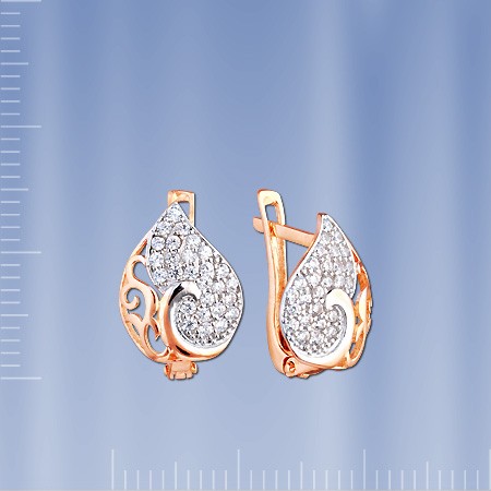 Серьги из золота 585°, украшенные фианитами ¢ 1 мм. Биколор. Эти ослепительные серьги поразят вас красотой и элегантностью.