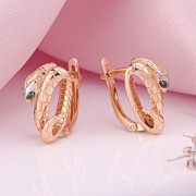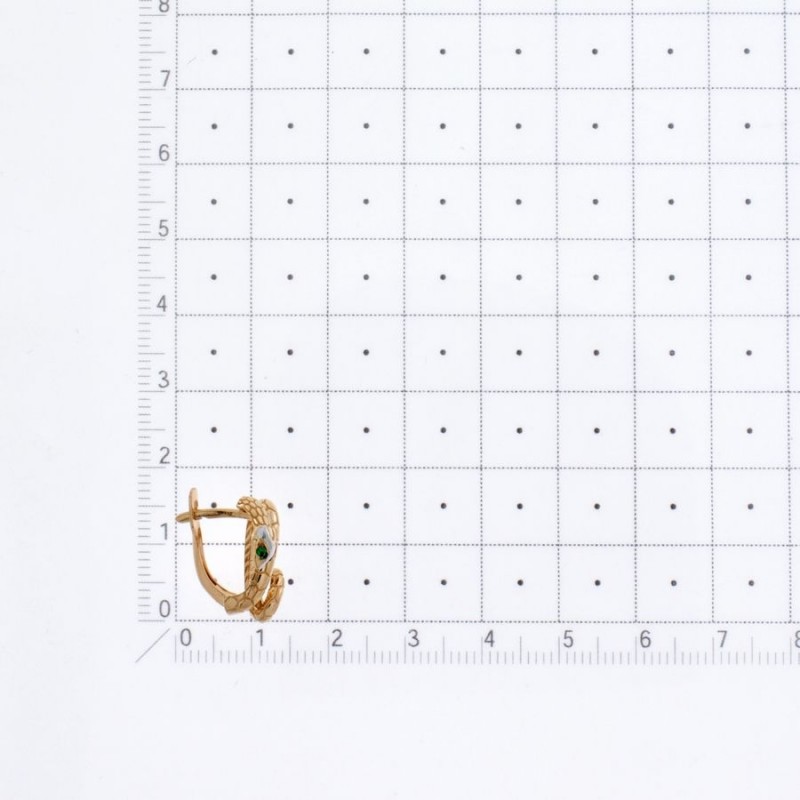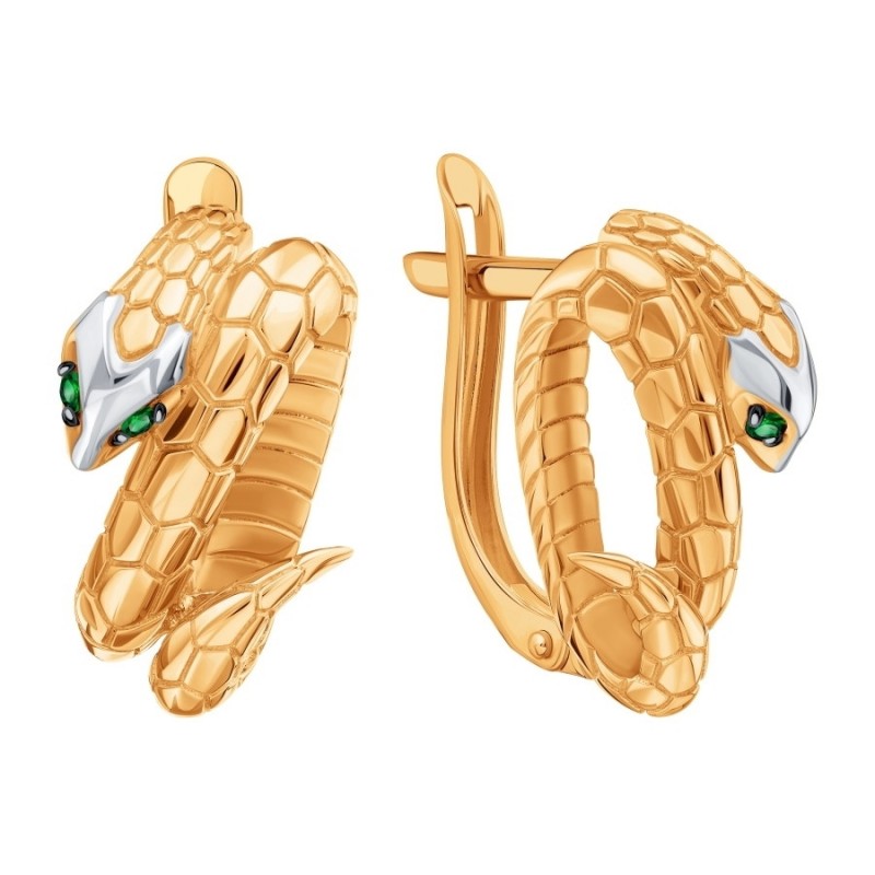 русского золота 585 пробы в форме змеи, украшенные зелеными циркониями и вставками из