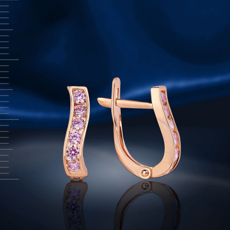Нежные золотые серьги из российского красного золота 585 пробы, украшенные сверкающими циркониями!