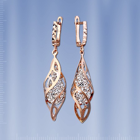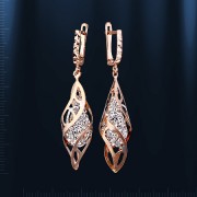 Серьги из красного золота 585° с фианитами. Очень красивая, женственная и элегантная, с надежной и надежной застежкой. Длина около 45 мм.