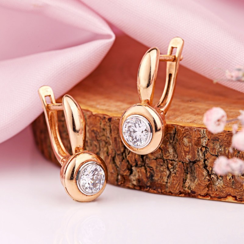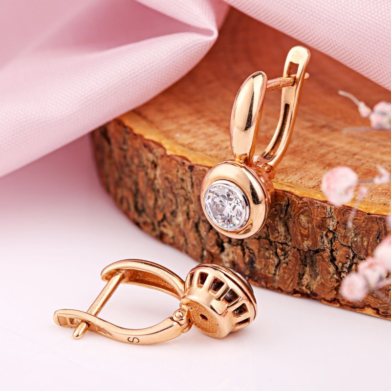 красного золота придает серьгам теплый блеск и гармоничный контраст с ярко-белым камнем. Удобная английская застежка обеспечивает комфортное и надежное ношение — идеально подходит на каждый день и для особых случаев.