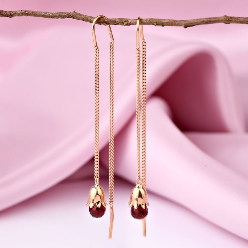 Серьги из красного золота 585 пробы, украшенные гранатом