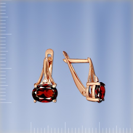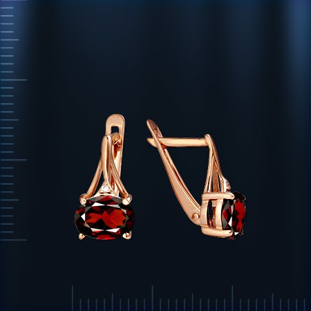 Серьги из красного золота 585°, украшенные 2 гранатами (8,0 х 6,0 мм 0,591 карат) и 2 фианитами ¢ 1,25 мм. Эти ослепительные серьги порадуют вас красотой и элегантностью.