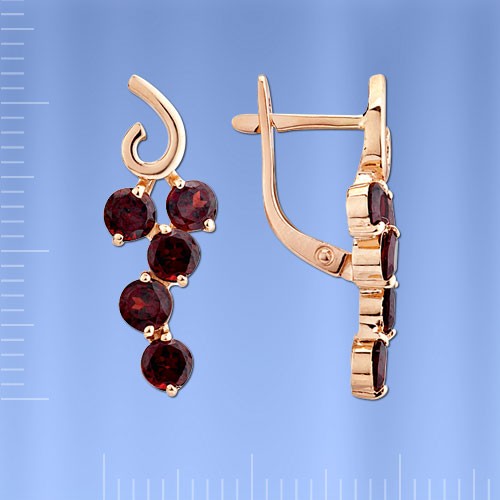 Серьги из красного золота 585°, украшенные 10 гранатами (¢ 4,0 мм)