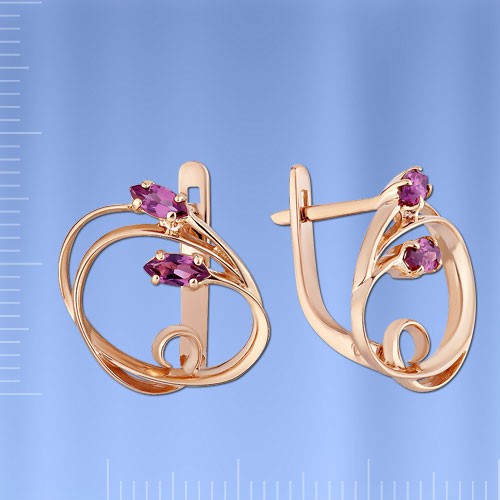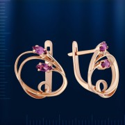 Серьги из красного золота 585°, украшенные 4 родолитами (5,0 х 2,5 мм)