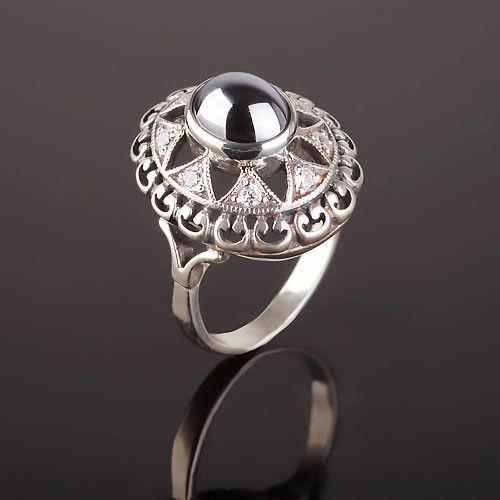 Кольцо из черненного серебра 925 пробы с синтетикой span>Гематит (10,0 х 8,0 мм), фианиты ¢ 1,0 мм