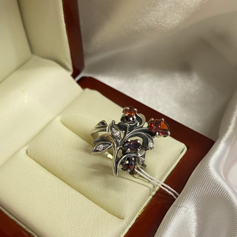 гранатом и сверкающими циркониями в красивой серебряной оправе из черненого серебра 925 пробы. Прекрасный подарок любимой женщине, который подчеркнет ее неповторимую красоту!