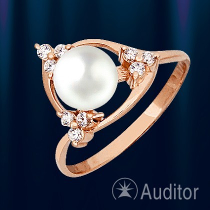 Кольцо из красного русского золота 585° с цирконами и жемчугом.