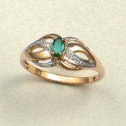 Кольцо из красного золота с изумрудом и бриллиантами.
