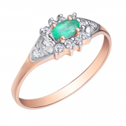Кольцо из красного золота с изумрудом и бриллиантами.
