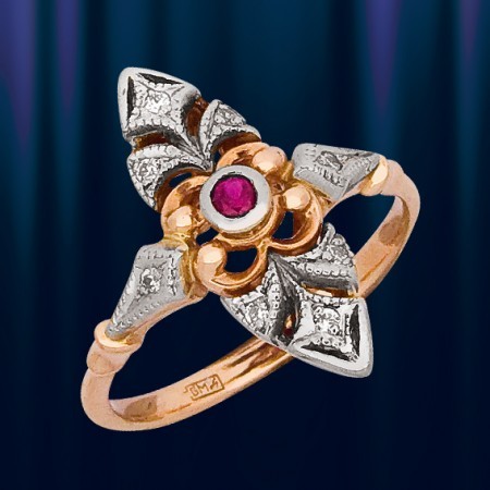 АДАМАС- Московская ювелирная фабрика Кольцо из красного и белого золота с корундом и цирконом – яркое и незабываемое! Золото 585 пробы.