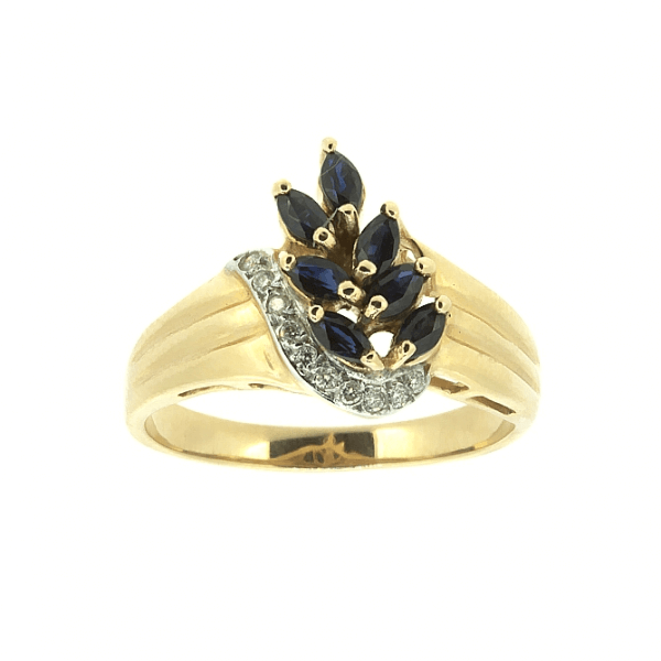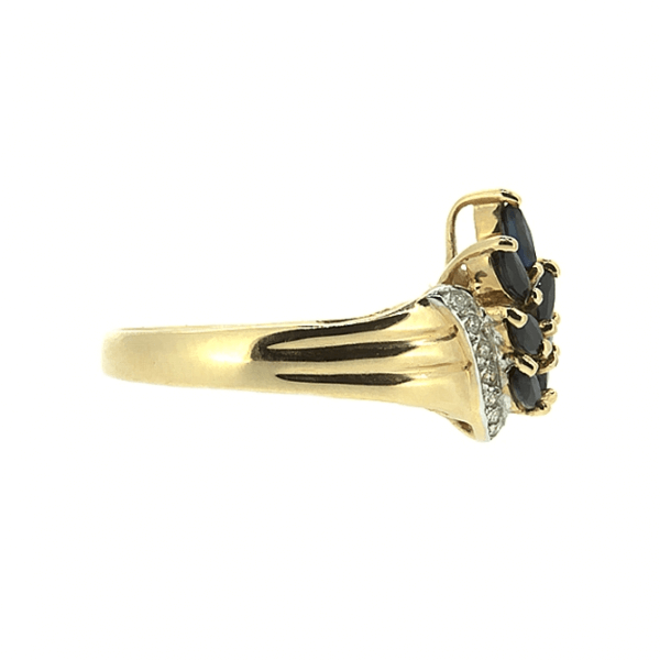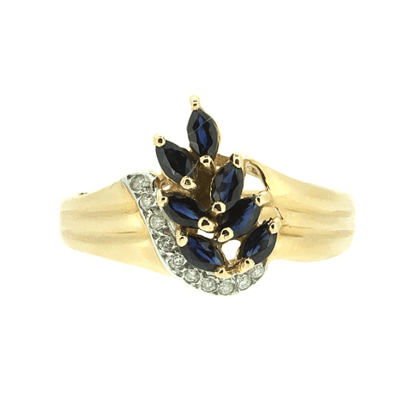 Кольцо из красного золота с сапфирами и бриллиантами.