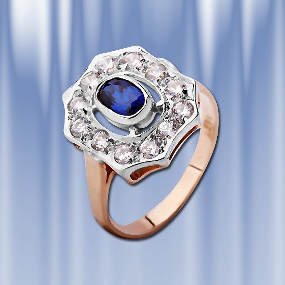 Кольцо с сапфиром, биколор