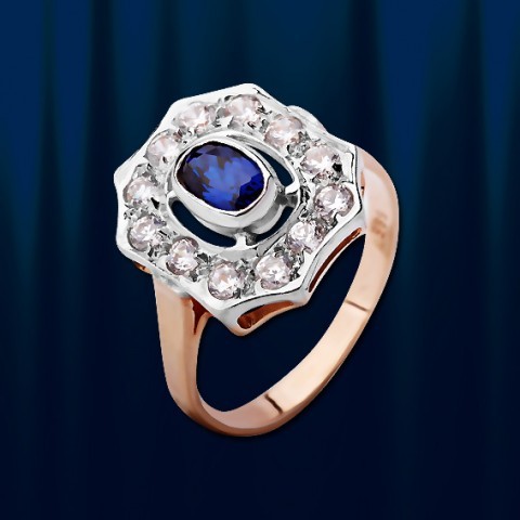 Золотое кольцо с синтетическим сапфиром, изготовленным из Русское красное/Белое золото 585°.