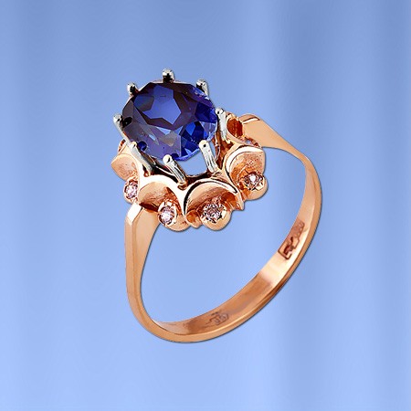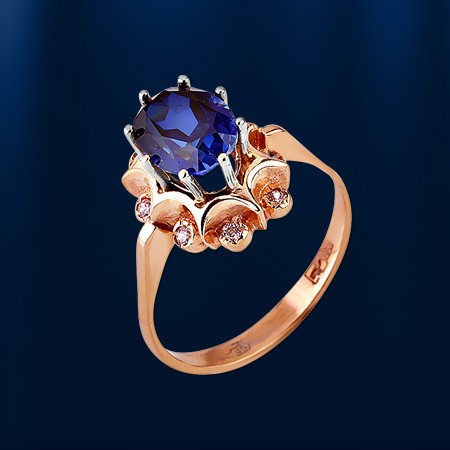 Кольцо изготовлено из российского красного золота 585° с сапфирами (8,0 x 6,0 мм). Высота ок. 15,0 мм