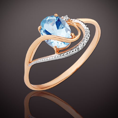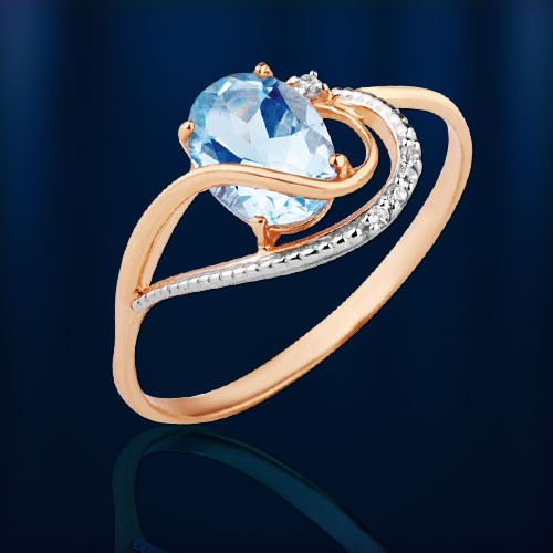 Кольцо выполнено из российского красного/белого золота 585° с топазом (8,0 х 6,0 мм 0,457), 5 фианитами ¢ 1,0 мм