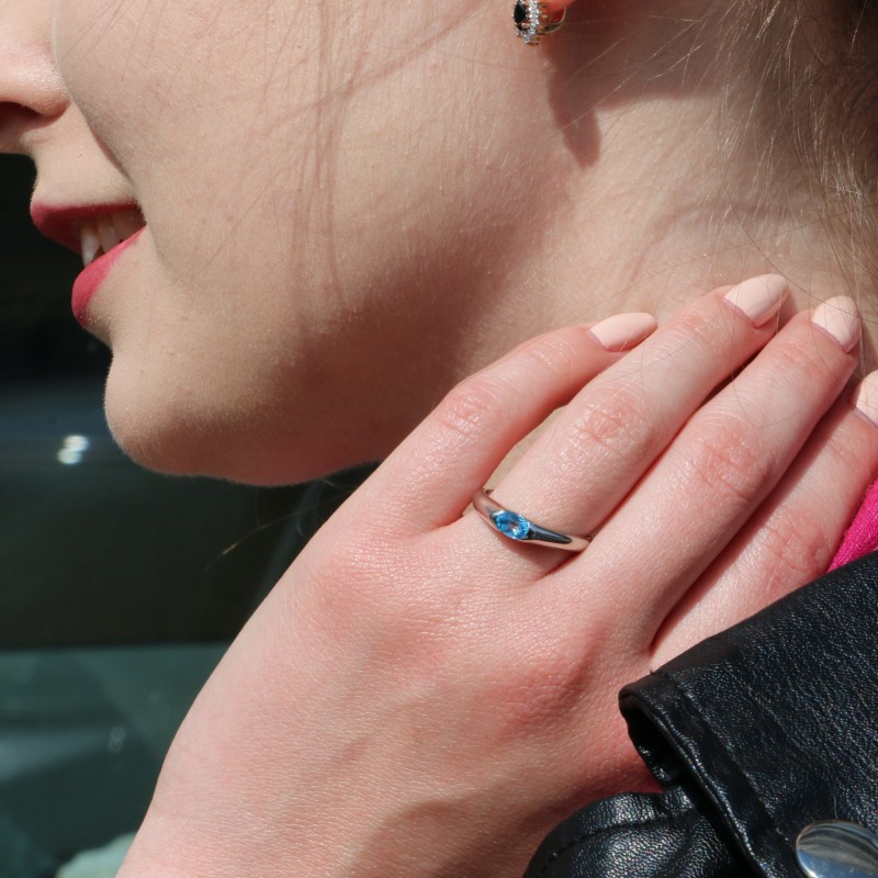 топаз овальной формы весом 0,45 карата (6*4 мм). Идеально ложится на палец, не вызывая никакого дискомфорта. Может быть с агатом, сапфиром,