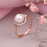 красного золота 585 пробы, украшенное очаровательными и сверкающими циркониями и красивым культивированным