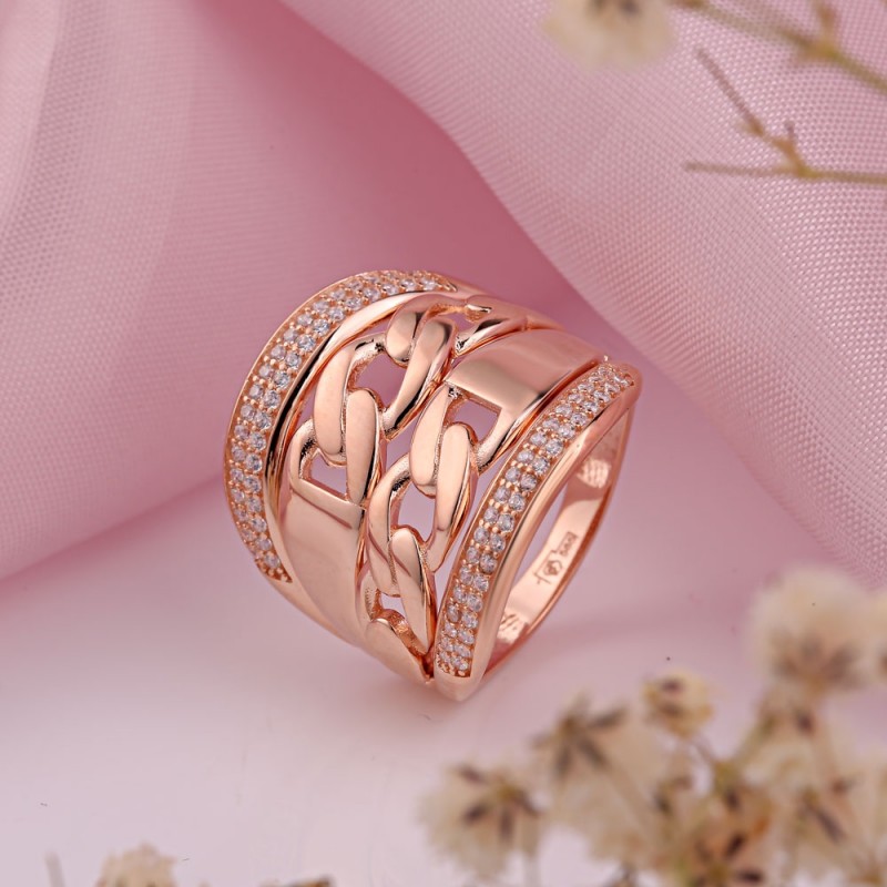 Золотое кольцо из красного золота 585 пробы, Германия. Очаровательное и нежное кольцо, украшенное сверкающими цирконами. Подчеркивает женственность, элегантность и хороший вкус. Очаровательный подарок для Ваших близких!