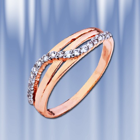 Кольцо изготовлено из красного российского золота 585 пробы, с бесцветными цирконами, которые являются идеальной имитацией бриллиантов.