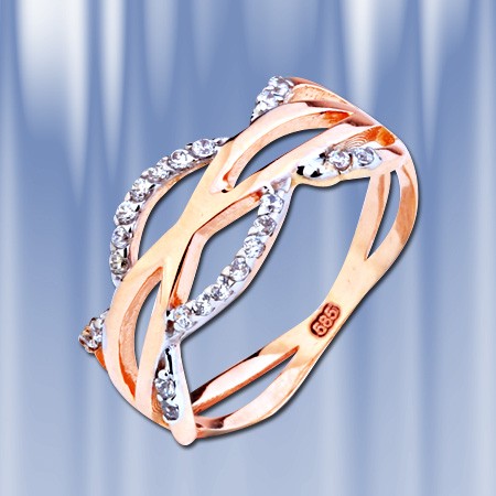 Кольцо изготовлено из красного российского золота 585 пробы, с бесцветными цирконами, которые являются идеальной имитацией бриллиантов.
