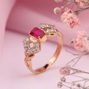 Феерическое и нежное кольцо из белого/розового золота 585 пробы, украшенное феерическими и сверкающими циркониями и рубиновым