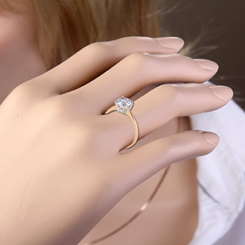 Кольцо изготовлено из российского красного/белого золота 585° с фианитом (¢ 7,5 мм). Высота около 7,5 мм