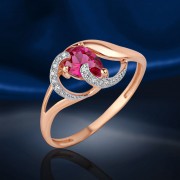 Золотое кольцо с цирконием и рубином