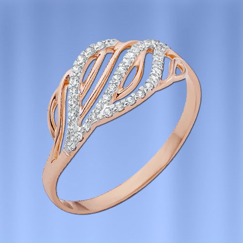 Кольцо выполнено из российского красного/белого золота 585 пробы, с 36 фианитами ¢ 1,0 мм, которые являются идеальной имитацией бриллиантов.