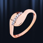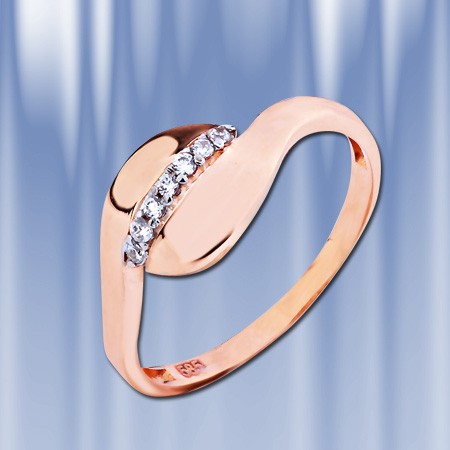 Кольцо изготовлено из красного российского золота 585 пробы, с бесцветными цирконами, которые являются идеальной имитацией бриллиантов.